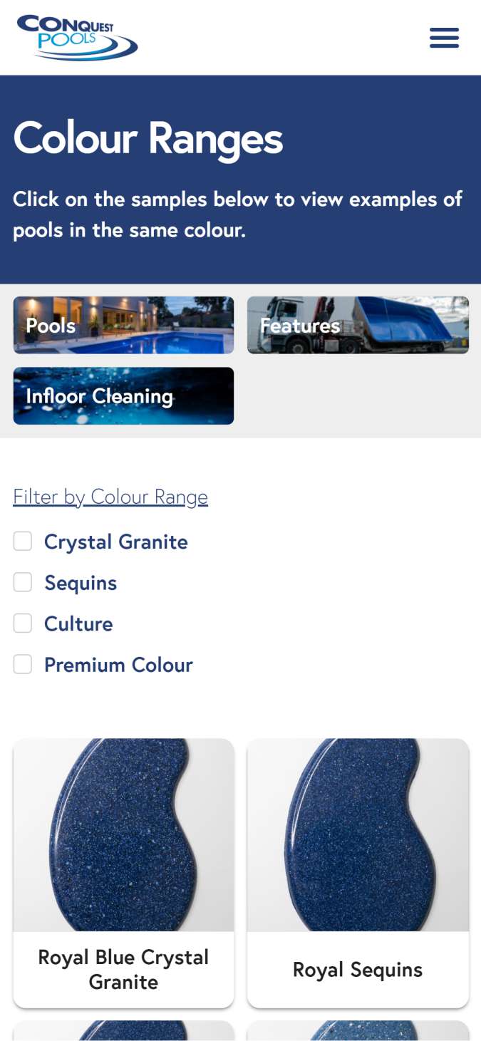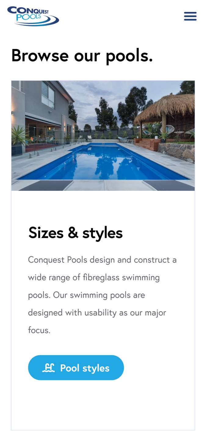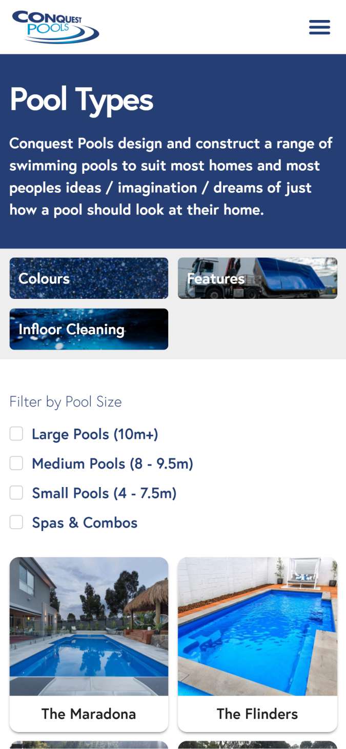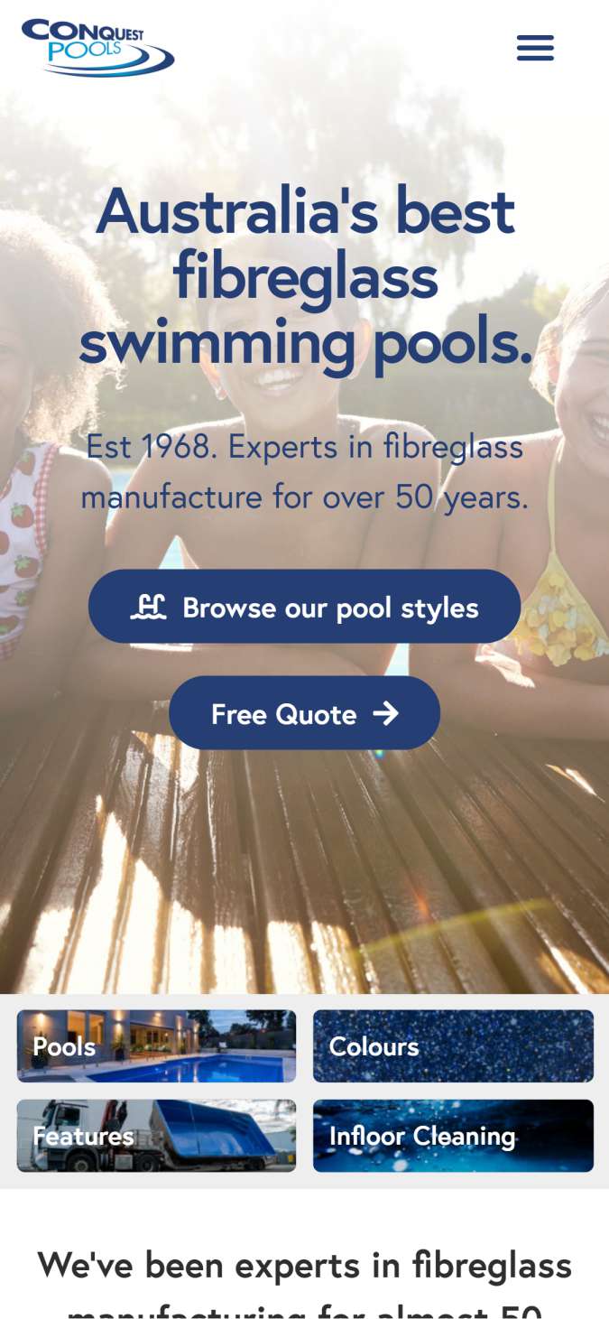 We redesigned the Conquest Pools website to reflect their 50 years of experience as experts in the manufacturing of fibreglass pools.
