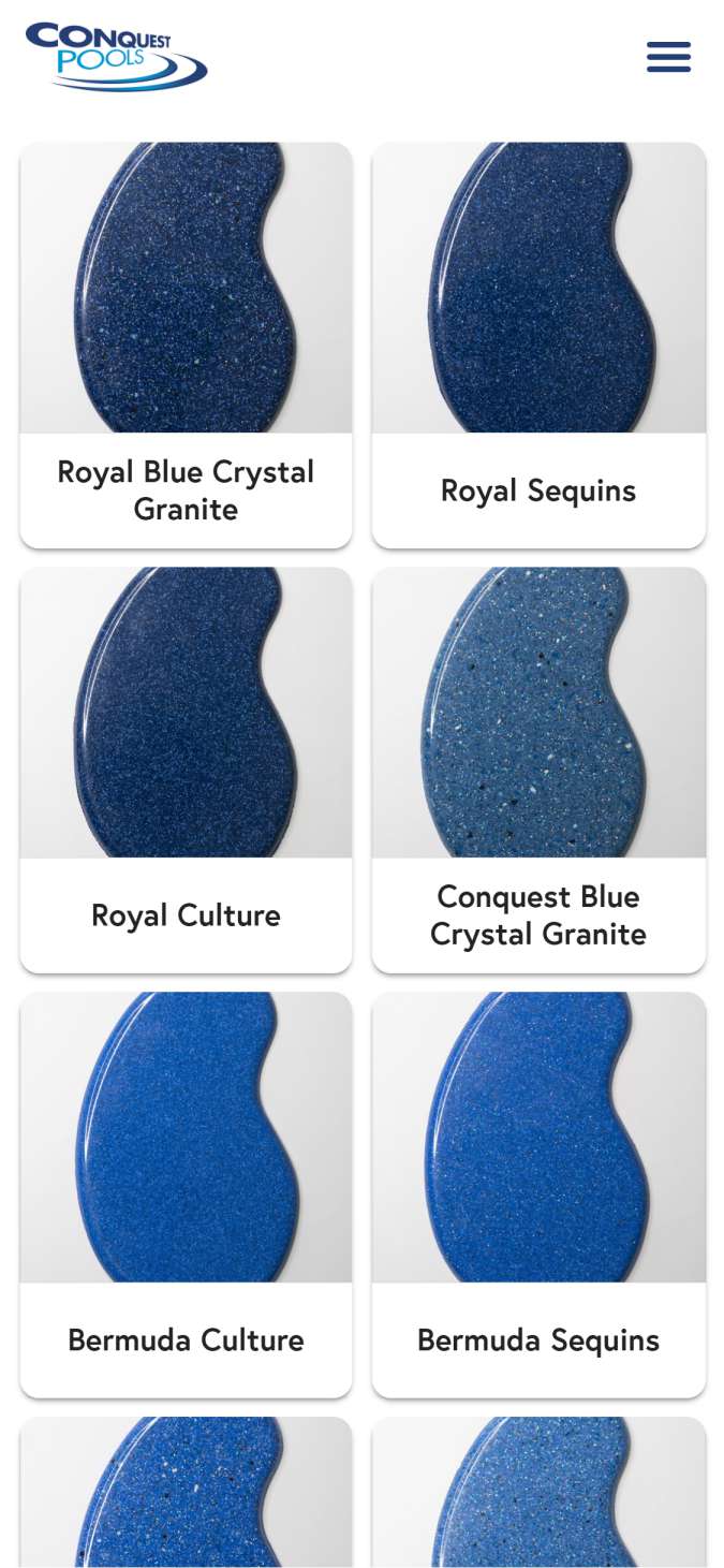 Conquest Pools came to us to design an innovative and efficient way of displaying their products, and communicating important information to their customers. Until now, it's been difficult for customers to browse through pool styles, colours, and sizes without seeing flyers in person.